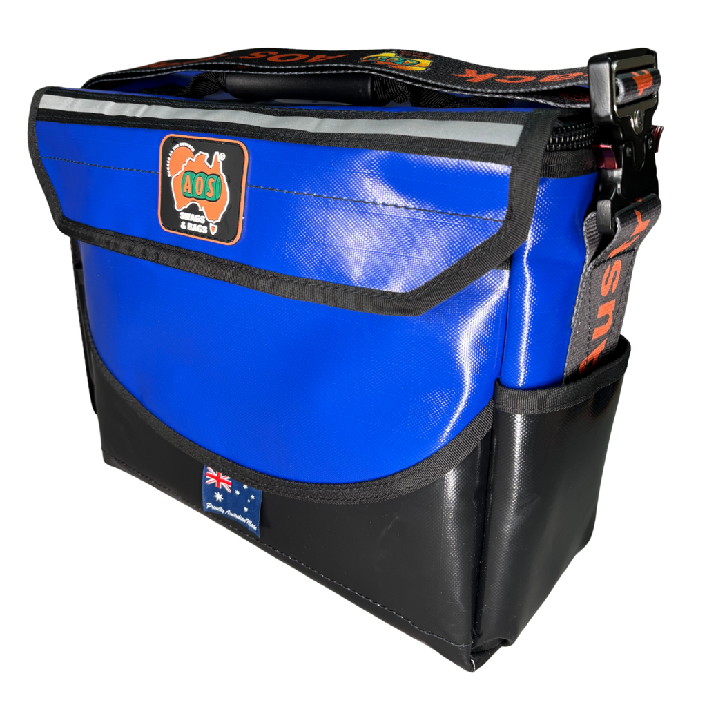 This AUSTRALIAN MADE AOS Marine Tackle Bag is purpose-built for anglers who demand durability, organisation, and protection from harsh marine conditions. Made from all-blue heavy-duty PVC with a triple-layer base, this bag keeps your fishing gear safe from salt, spray, and sun. Featuring a double lockable zip, quick-release buckle, and multiple internal pockets, it’s the perfect balance between function and toughness — ready for life on or off the water.